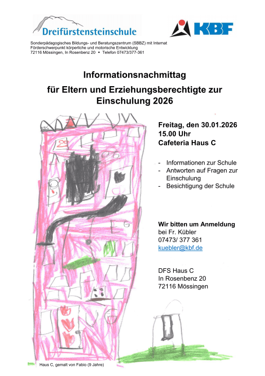 Am Freitag, den 30. Januar 2026, lädt die Dreifürstensteinschule Mössingen interessierte Eltern und Erziehungsberechtigte herzlich zu einem Informationsnachmittag ein.