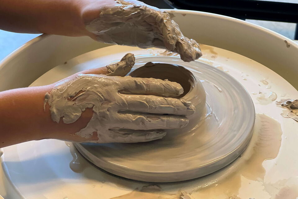 Angebote wie Schlickerplatte, Tonkiste und Töpferscheibe fördern Selbstständigkeit, Wahrnehmung und Kommunikation.